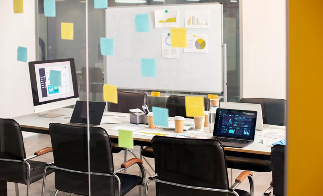 A functional administrative office and conference area facilitating seamless coordination and communication.
